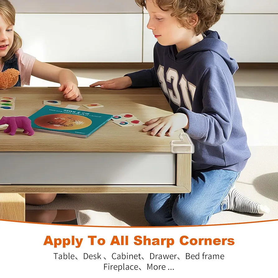 Our corner protector protect your baby from being hurt by the corners of coffee table,desk,TV cabinets and other sharp corners in the house.Dining tables, side tables, chairs, and desks STOP being a threat to your baby's safety once you stick our corner guards. Their durable construction instantly absorbs the impact of unexpected bumps. Making playtime fun time for all family!